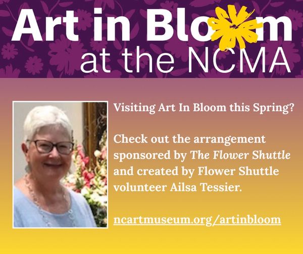 May 2023 - Flower Shuttle volunteers Ailsa Tessier and Jenna Fowlkes are recognized in the May/June issue of Midtown Magazine for their floral arrangement at the 2023 Art In Bloom exhibit at NC Museum of Art, Raleigh, NC - check out page 24!